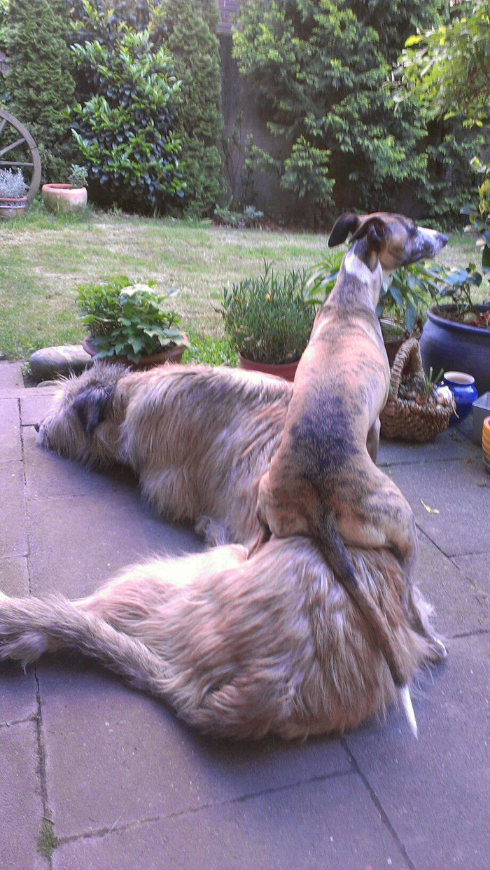 ไอริชวูล์ฟฮาวด์ เชื่อกันว่าเป็นสายพันธุ์มีอายุมากว่า 391 ปี ได้รับการตั้งชื่อตามส่วนผสมของสุนัขล่าเนื้อถูกใช้โดย Gaels เป็นสุนัขล่าสัตว์ที่เรียกพวกเขาว่าCú Faol (สุนัขล่าเนื้อ) ในขณะที่พวกมันอาจฟังดูเหมือนตำนาน - แต่ตอนนี้พวกมันเป็นสัตว์เลี้ยงที่น่ารักน่ารักและดูต๊องๆบางครั้ง ตามมาตรฐานสหพันธ์สุนัขโลกอย่างเป็นทางการความสูงที่ต้องการคือ 32 นิ้ว (81 ซม.) ถึง 34 นิ้ว (86 ซม.)